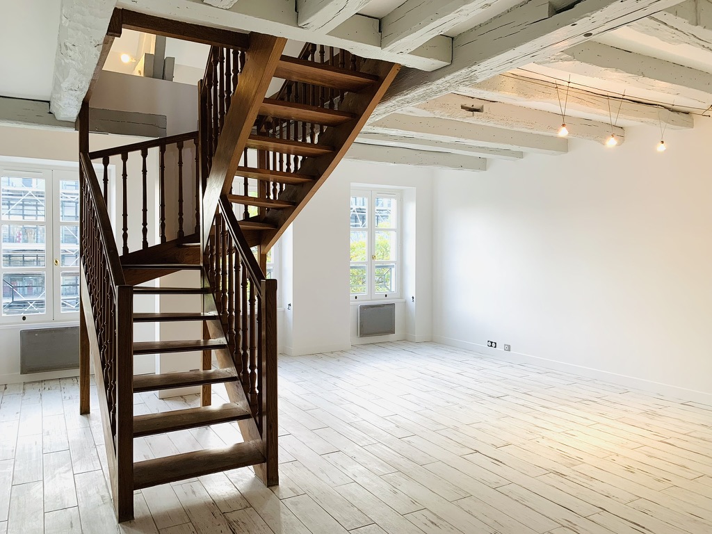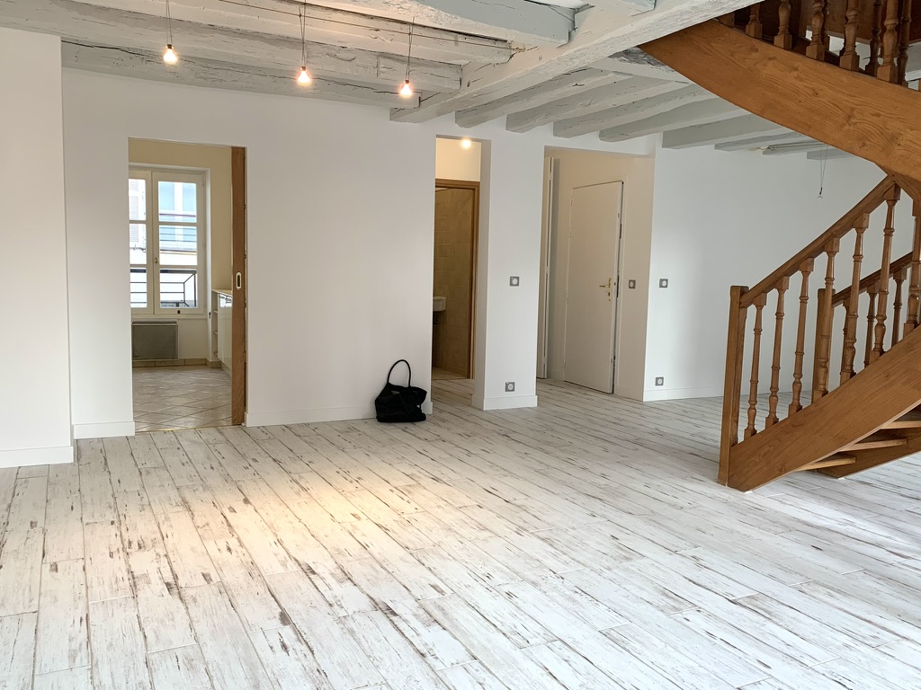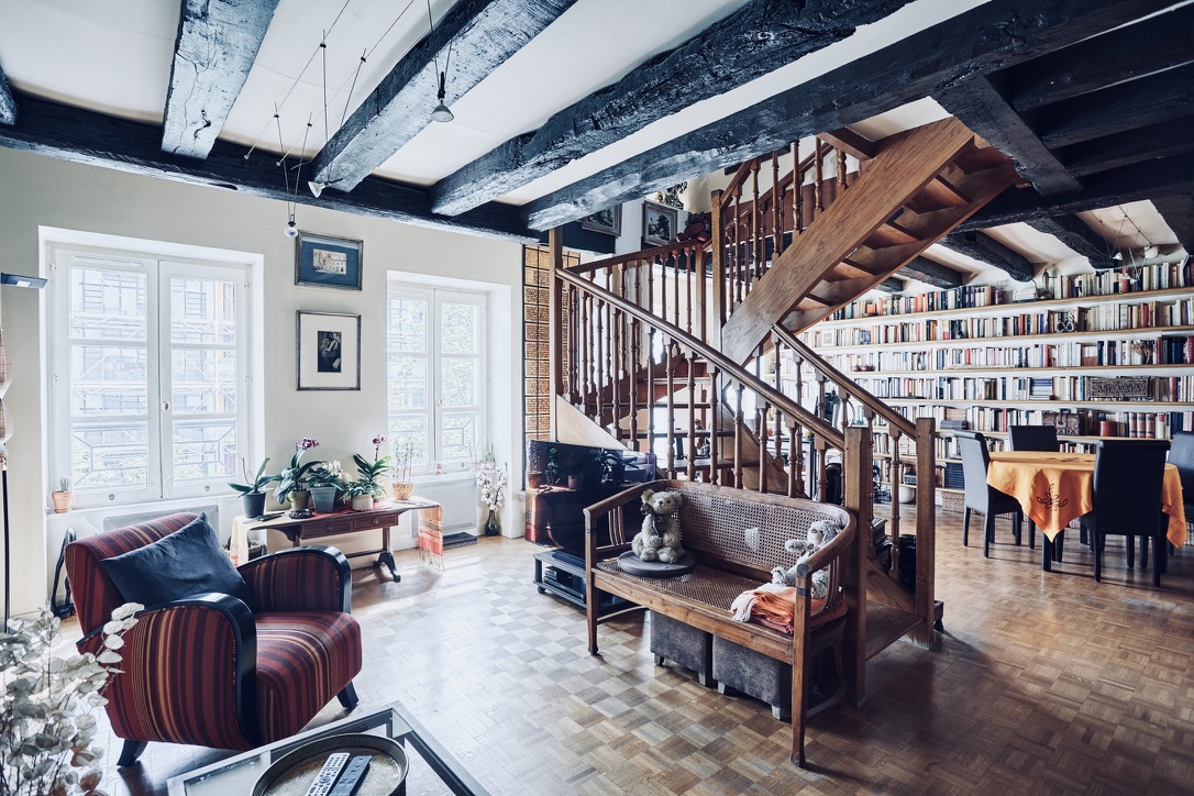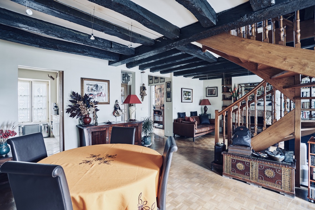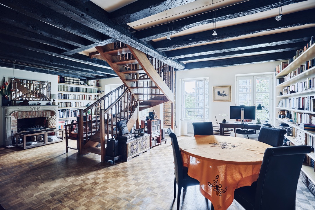 Préserver le charme de l’ancien d’un duplex de 125 m² pour y créer une ambiance « maison de campagne », en plein cœur du centre-ville, face à Beaubourg.