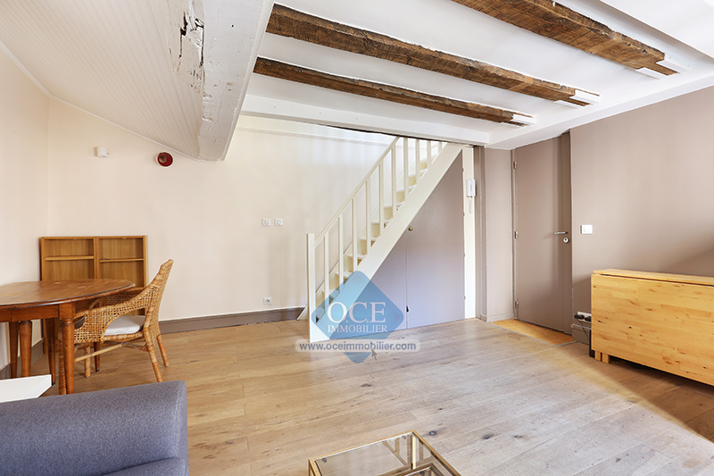 Ce duplex au charme unique, avec ses poutres apparentes, souffrait d’un manque de luminosité et d’espace. Les travaux ont été conçus pour optimiser cet intérieur, en créant un vaste espace de vie ouvert et lumineux, tout en intégrant une salle d’eau à l’étage, à la fois fonctionnelle et esthétique, directement dans la chambre.