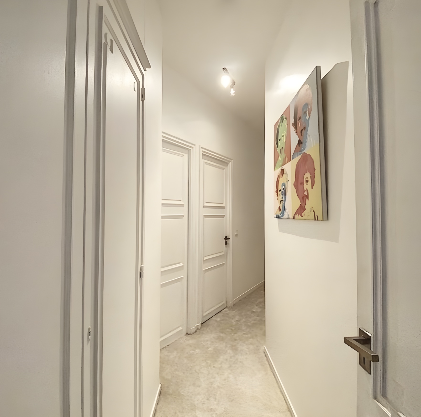 Le couloir a été entièrement repensé pour aménager des espaces de nuit privés pour chaque membre de la famille, optimisant ainsi la circulation et la fonctionnalité de l’appartement.