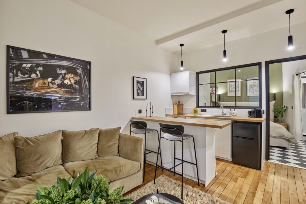 Ce studio a fait l’objet d’une transformation intégrale, pensée dans les moindres détails.