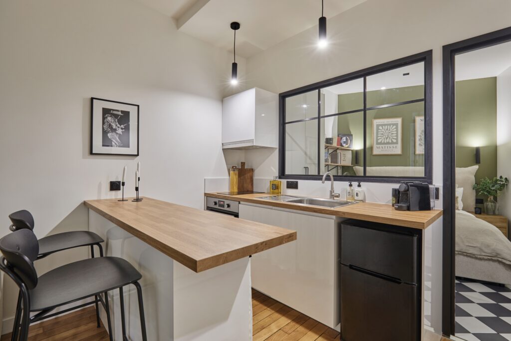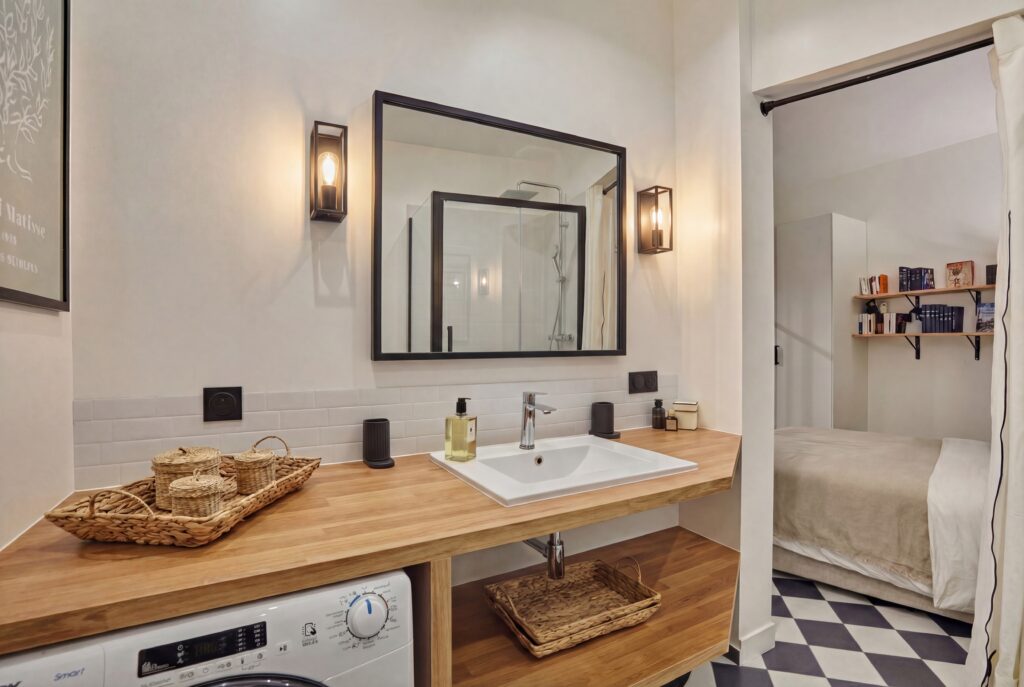 Aujourd’hui, ce studio rénové conjugue performance technique, optimisation des volumes et esthétique soignée, pour un résultat à la fois harmonieux et durable.