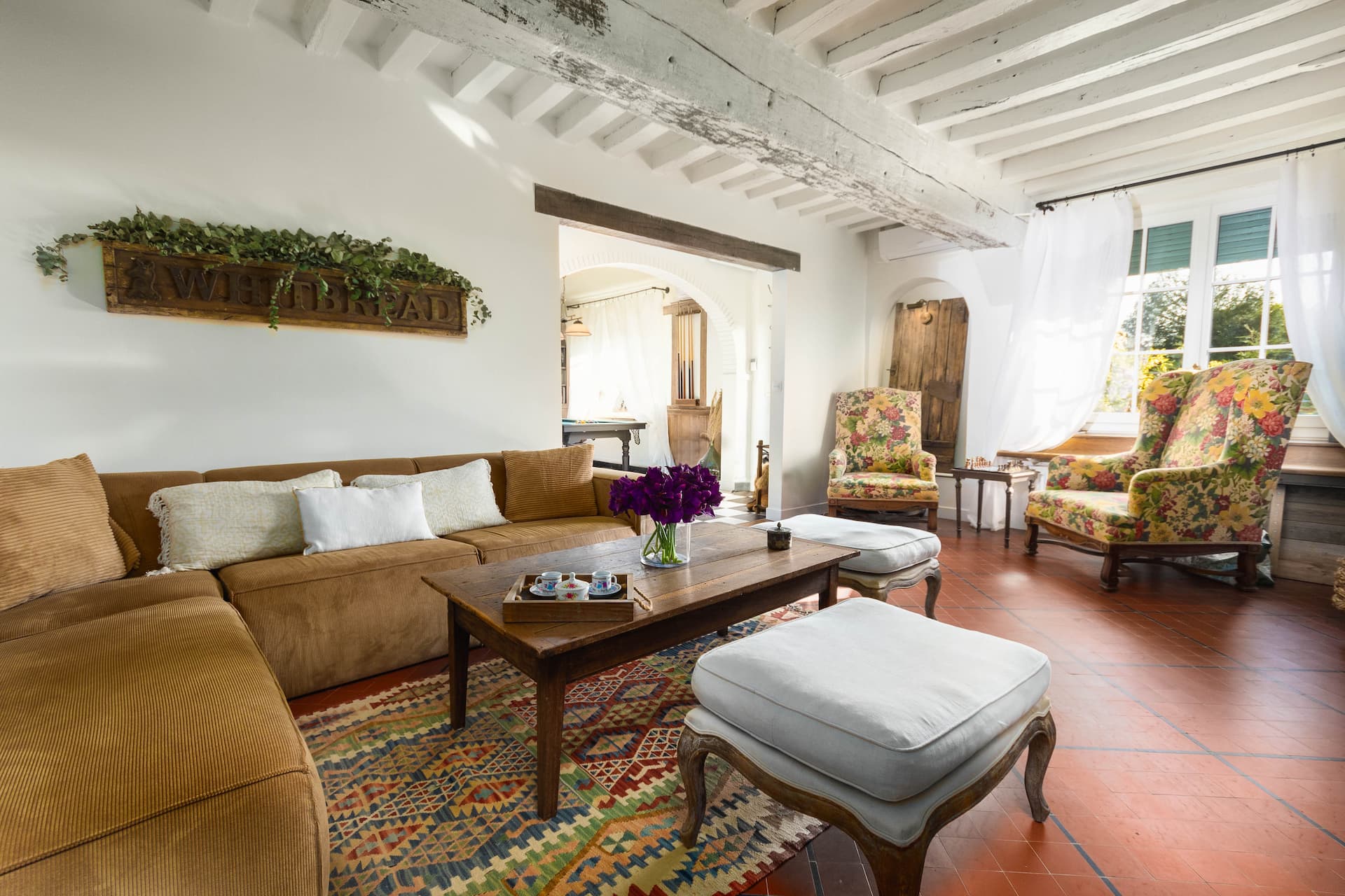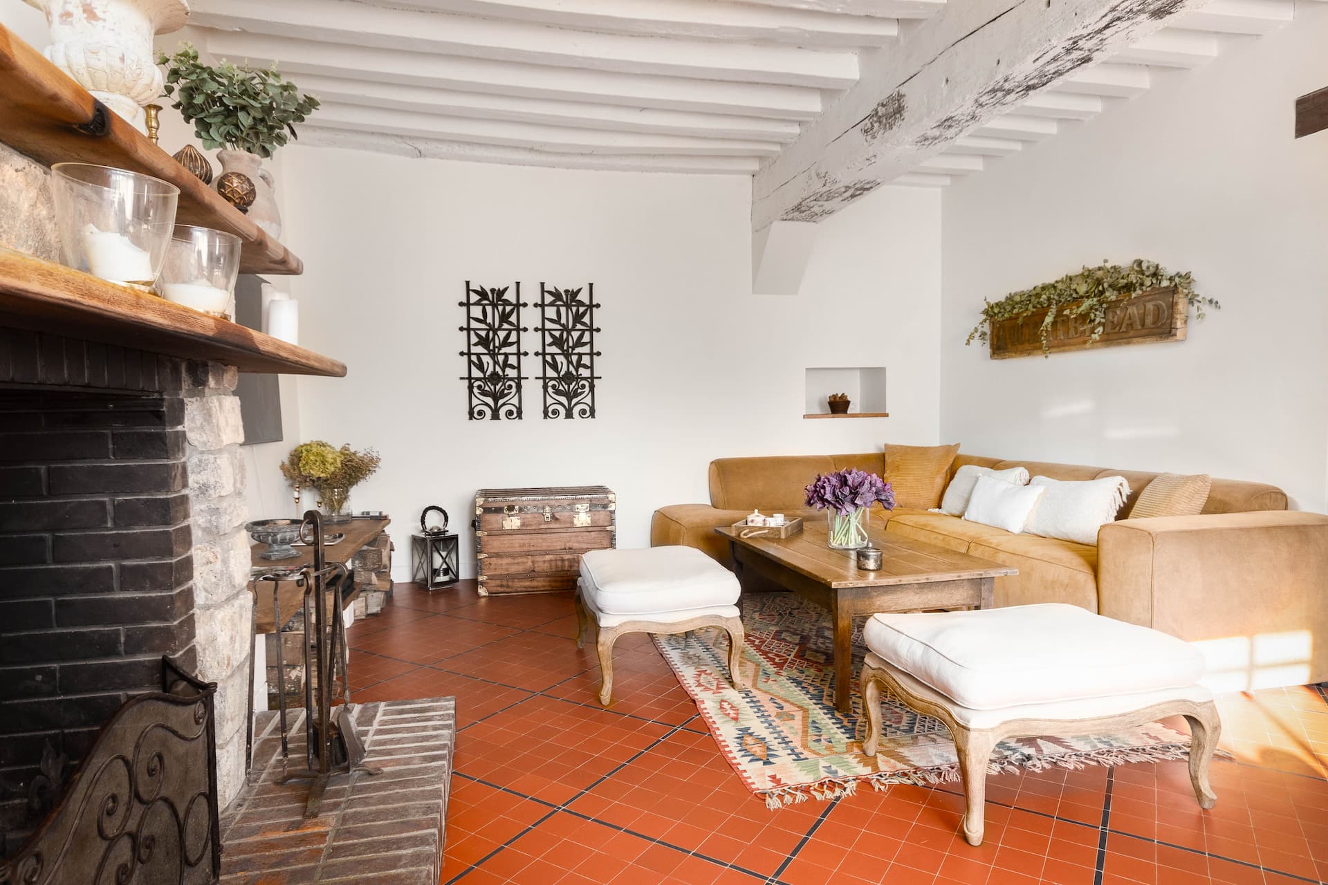 Poutres anciennes, tommette d’origine, grand mur en pierres, vue sur jardin… Mélangez tout cela avec du goût, de la créativité et de la rigueur, et vous avez le cocktail idéal pour un résultat que l’on vous laisse découvrir !