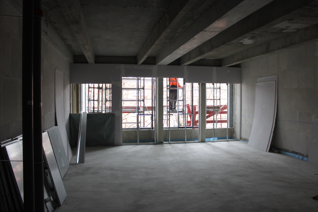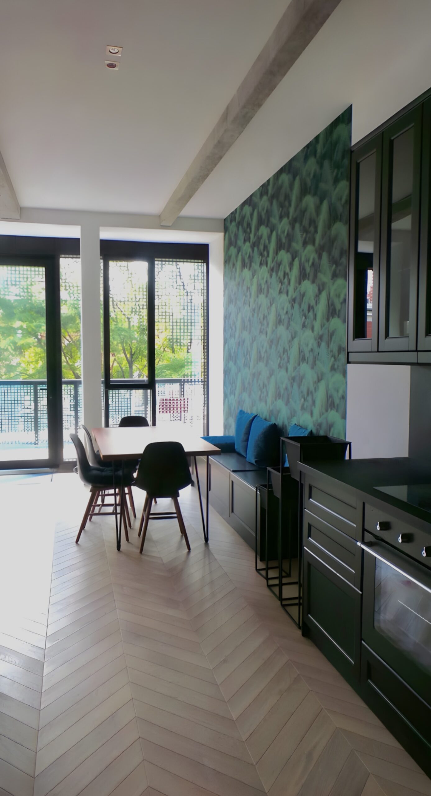 Aménagement complet d’un plateau brut, incluant le cloisonnement des espaces et la conception de meubles sur mesure, afin de transformer cet espace vierge en un intérieur fonctionnel et personnalisé, répondant aux besoins spécifiques de ses futurs occupants.