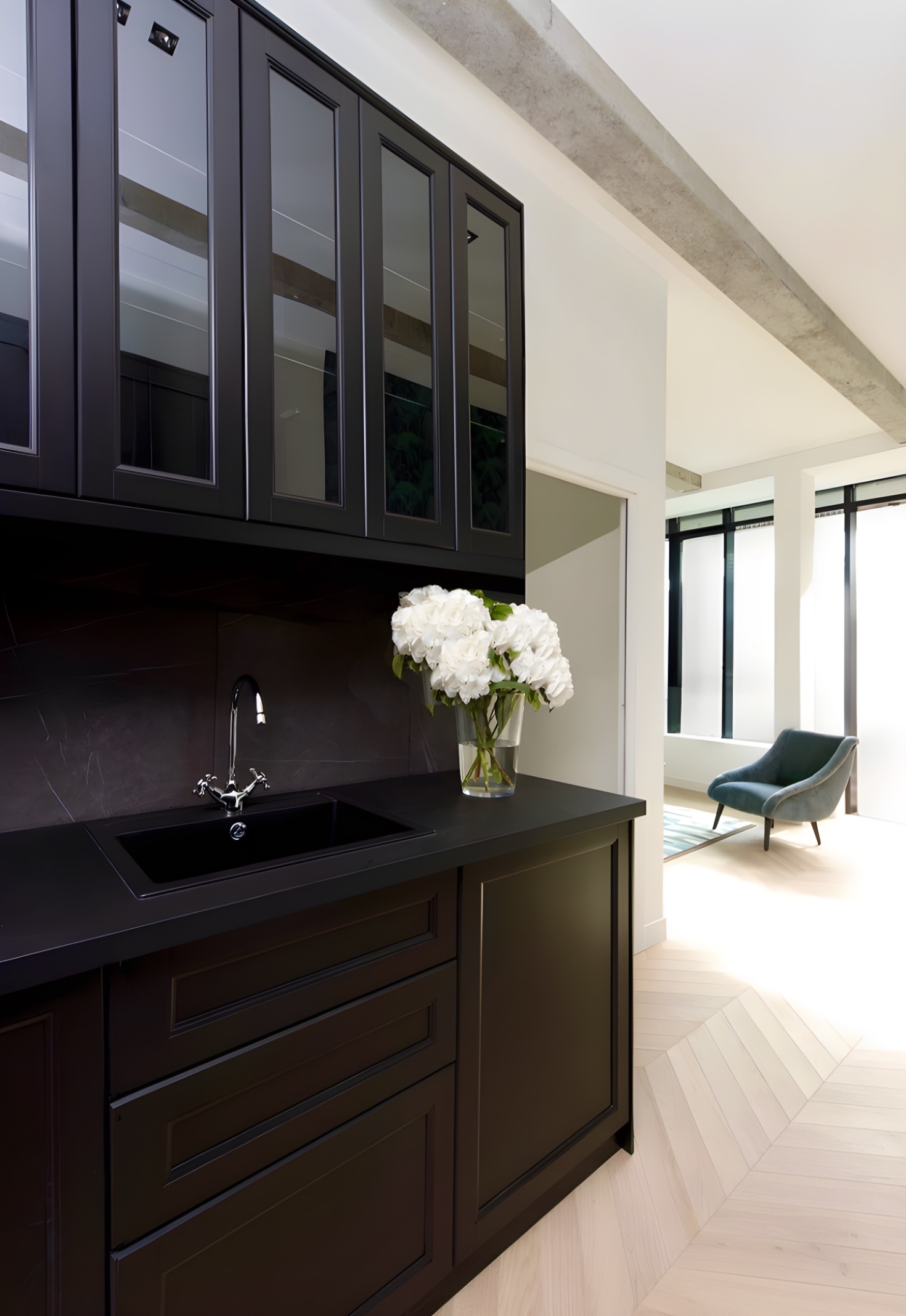 La création d’une verrière s’est avérée indispensable pour apporter une luminosité naturelle à l’espace nuit, tout en préservant l’intimité. La salle d’eau, quant à elle, a été conçue avec un soin particulier, alliant raffinement et élégance, dans une ambiance chic et rétro parfaitement maîtrisée.