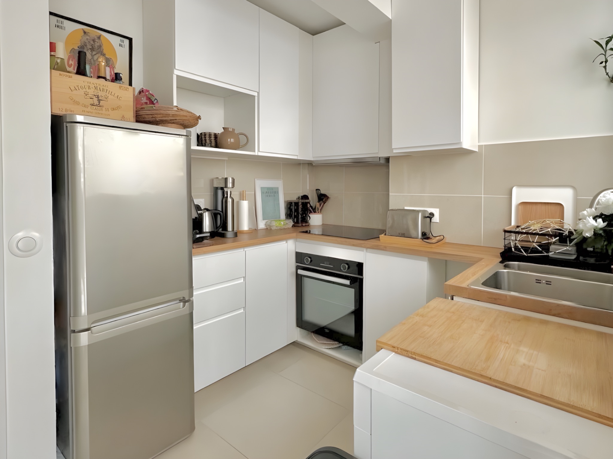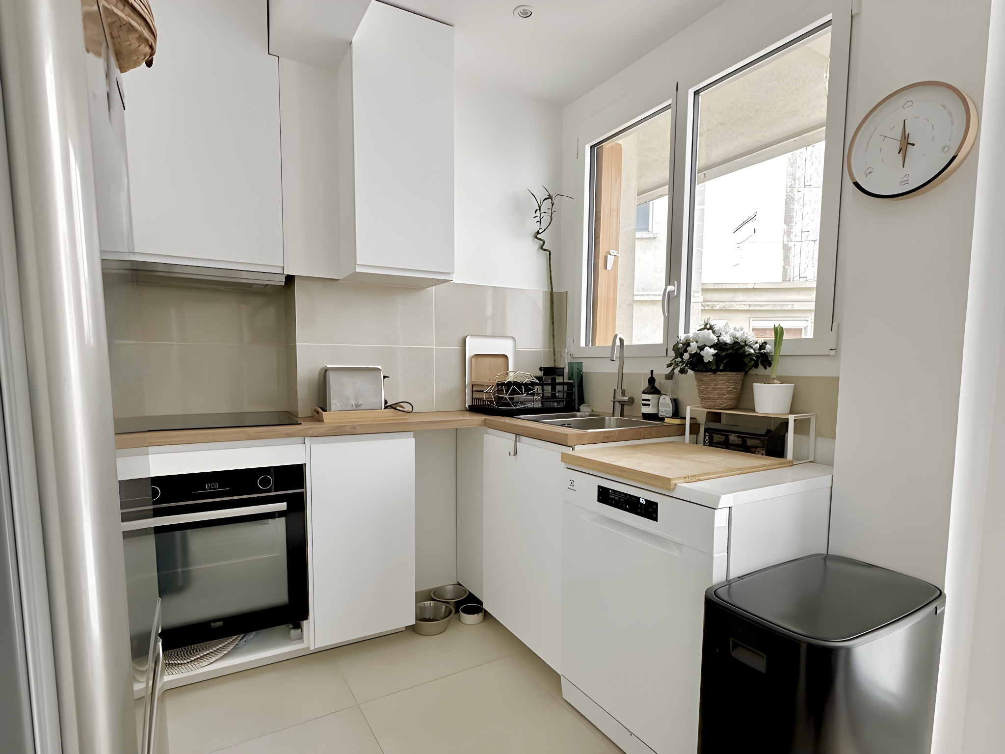 La cuisine a été entièrement rénovée, avec une réorganisation de l’aménagement.