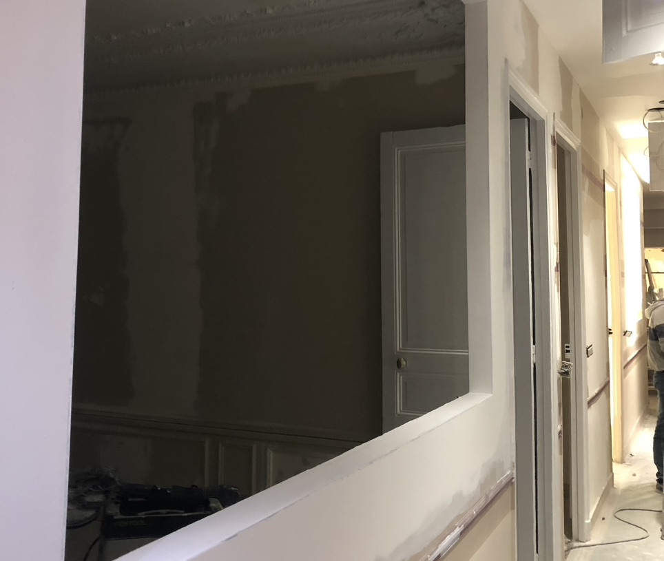 Transformation d’un appartement familial en locaux professionnels pour un cabinet d’avocats, menée à bien en un mois et demi grâce à une planification rigoureuse et une exécution soignée.
